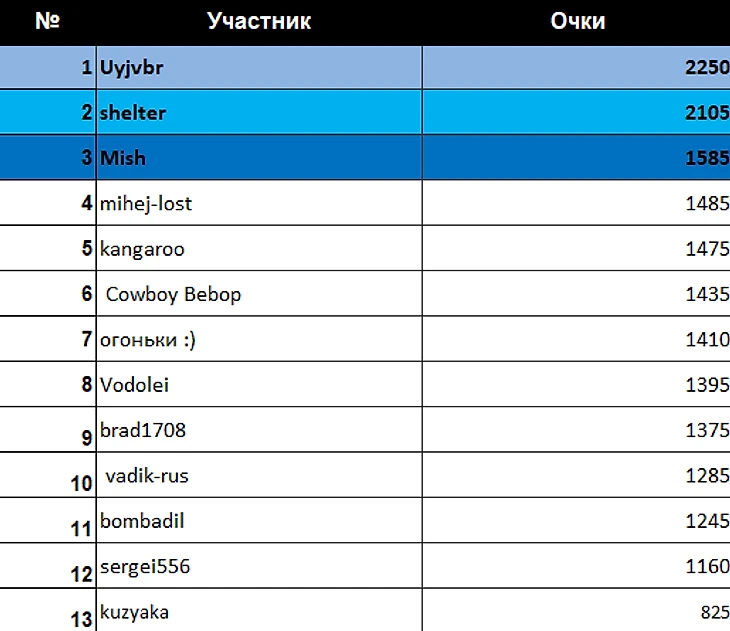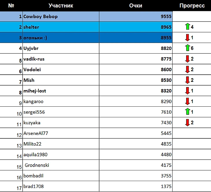 *Не забываем поздравлять чемпионов турнира в коментариях к посту ведь на их месте в любой момент можете оказаться и вы :)