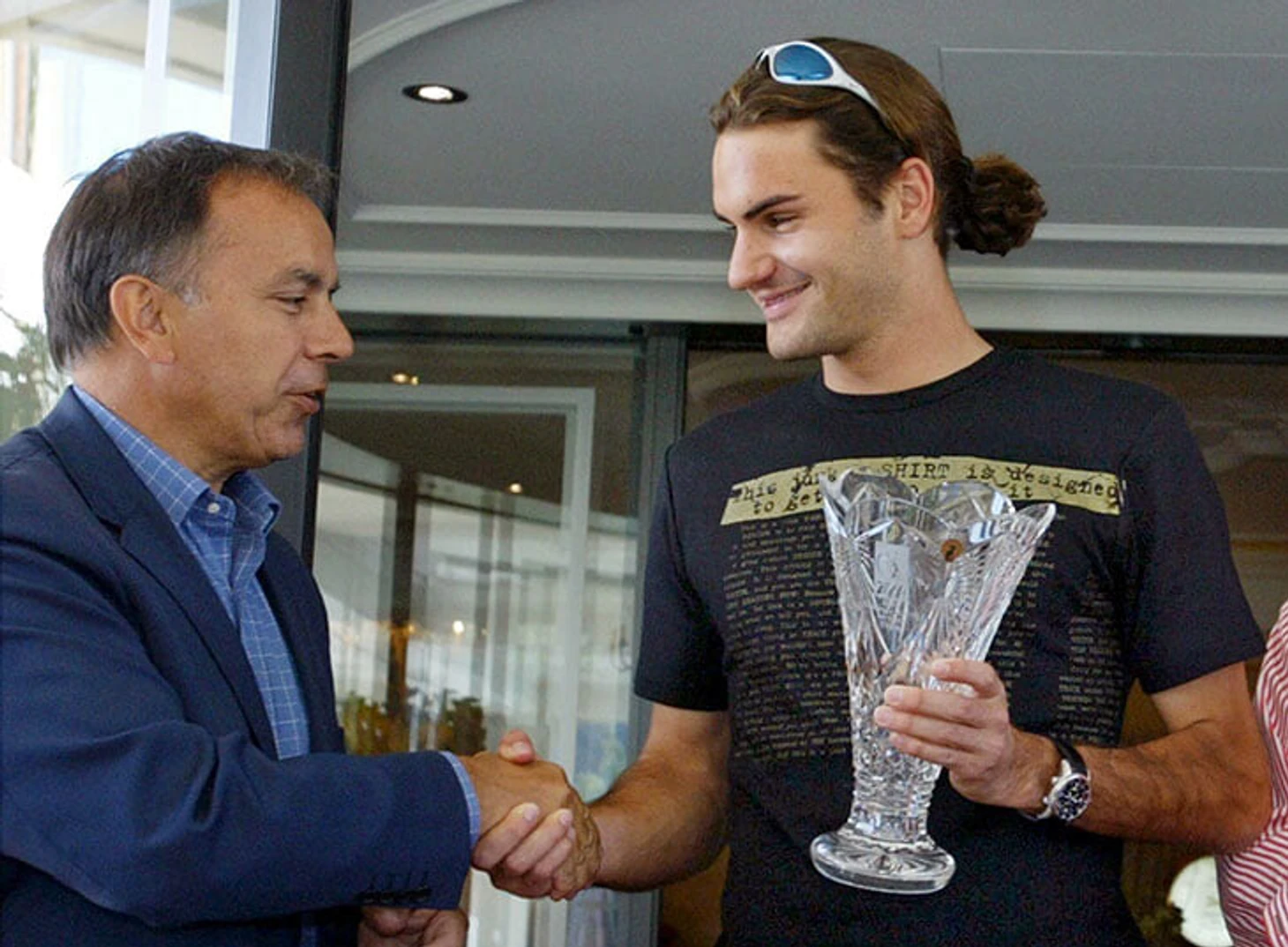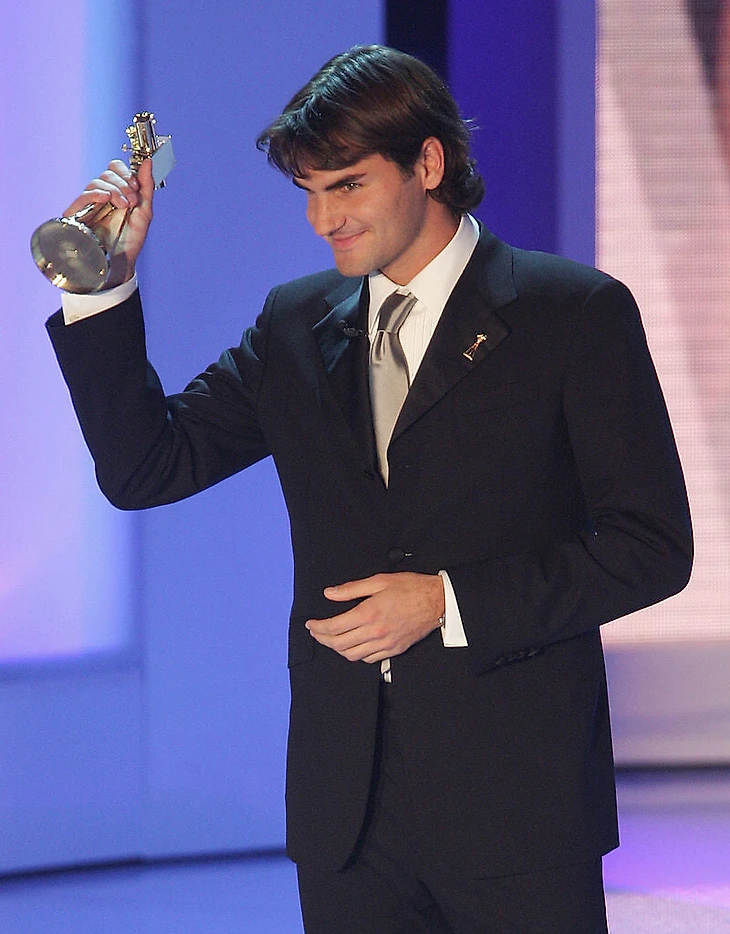 Чуть раньше тем летом Федерер получил награду лучшего игрока из Европы за предыдущий сезон на домашнем турнире в Гштааде в очках, которые кричат «начало нулевых»:
