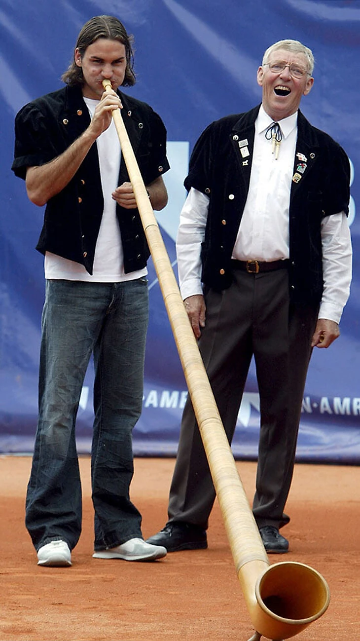 В 2004-м обошлось без скота, зато Роджера одели в современную версию пиджака от традиционного бернского костюма и предложили поиграть на альпийском роге: