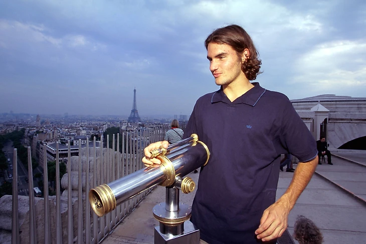 Совсем молодой Федерер в Париже на панорамной террасе Триумфальной арки. Фото не датировано, но, предположительно, это 2000 год – когда он начал носить длинные волосы.
