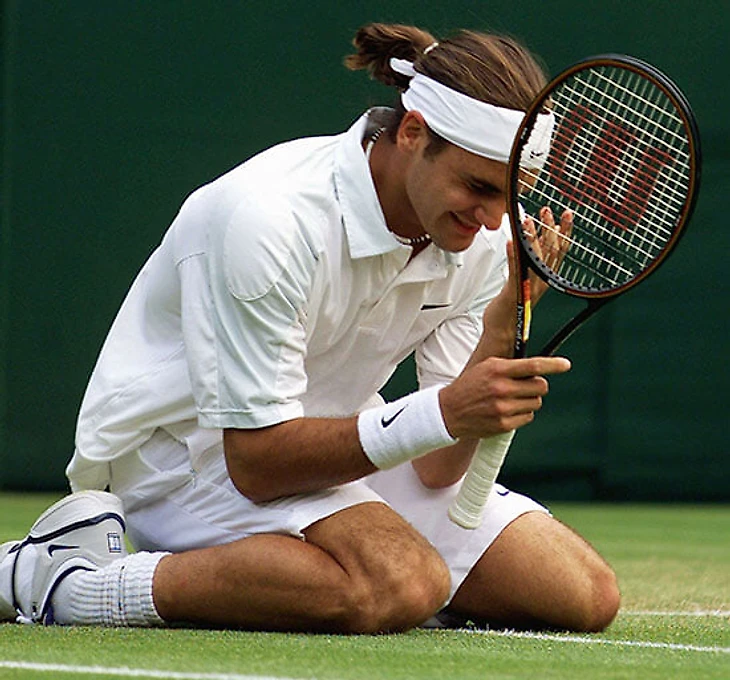 Прославился Федерер как раз с этой стрижкой, которую носил и распущенной, и в хвосте – например, когда в 1/8 финала «Уимблдона»-2001 обыграл семикратного и действующего чемпиона Пита Сампраса:
