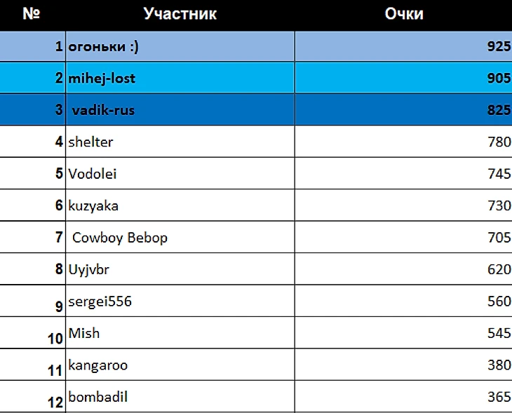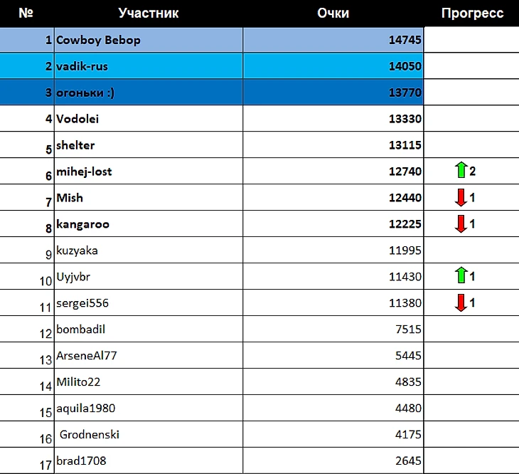 *Не забываем поздравлять чемпионов турнира в коментариях к посту ведь на их месте в любой момент можете оказаться и вы :)