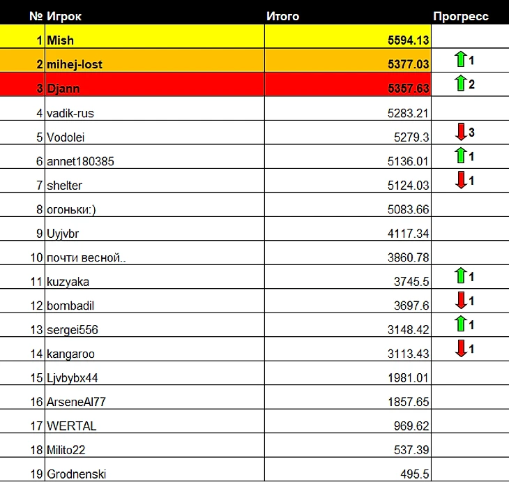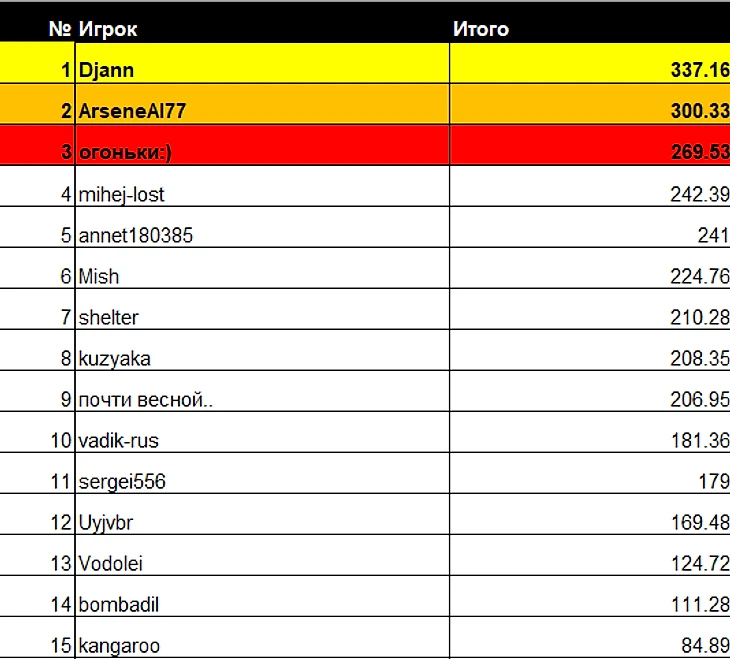 * Не забываем поздравлять чемпионов турнира в коментариях к посту ведь на их месте в любой момент можете оказаться и вы :)