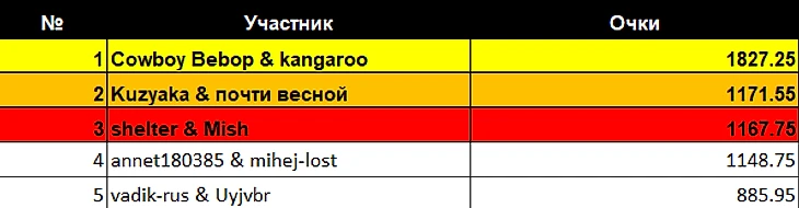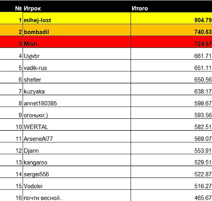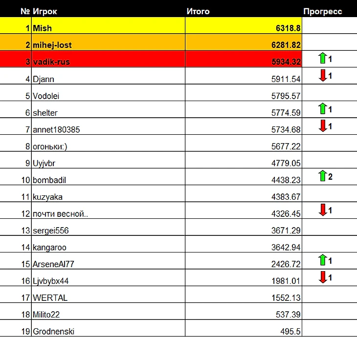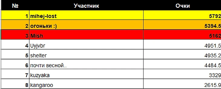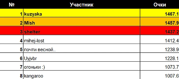 * Не забываем поздравлять чемпионов турнира в коментариях к посту ведь на их месте в любой момент можете оказаться и вы  :)