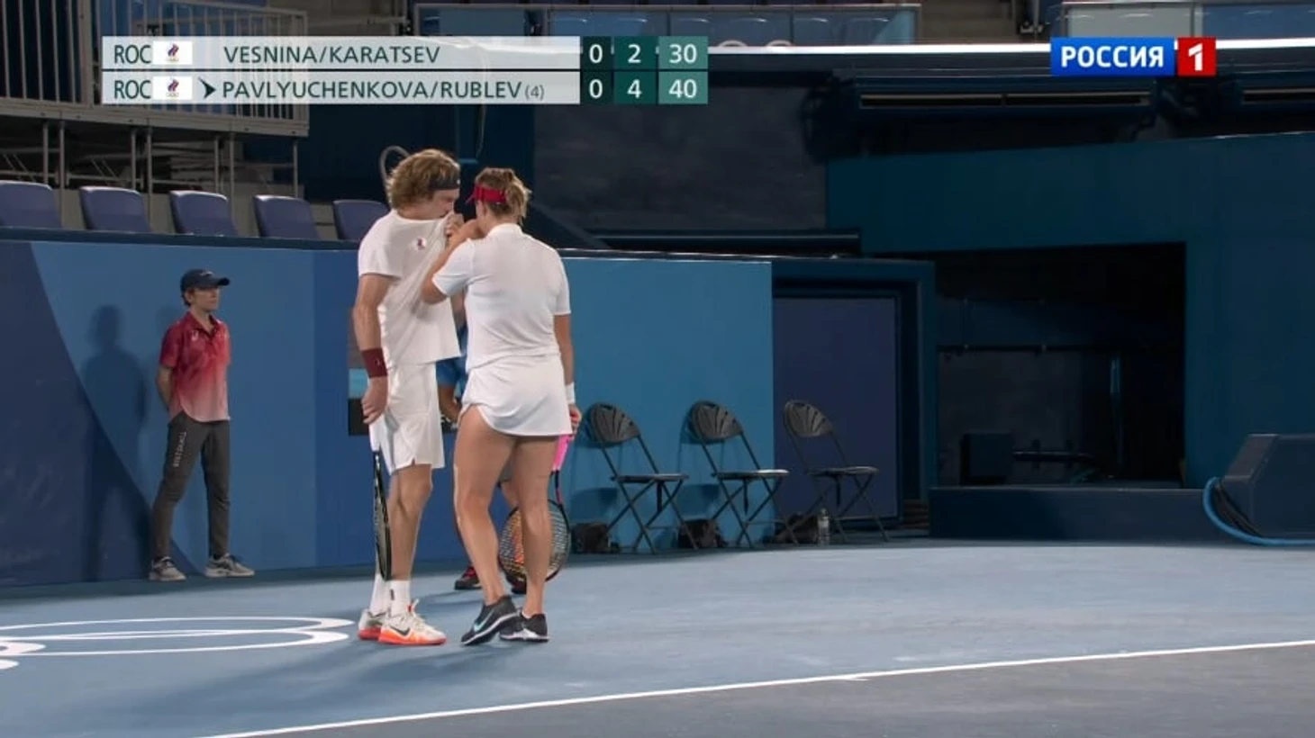1:1 Павлюченкова и Рублев отыграли брейк-пойнт – Веснина чуть ошиблась в розыгрыше. Но потом Карацев заработал еще один суперклевым коротким кроссом с форхенда.