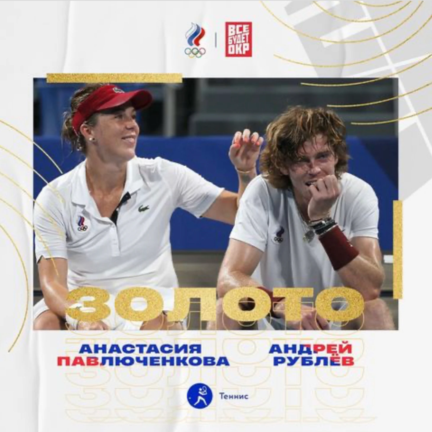 Российские теннисисты Анастасия Павлюченкова и Андрей Рублевзавоевали золото в миксте на летних Олимпийских играх — 2020 в