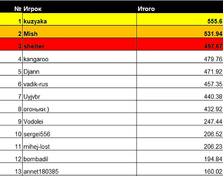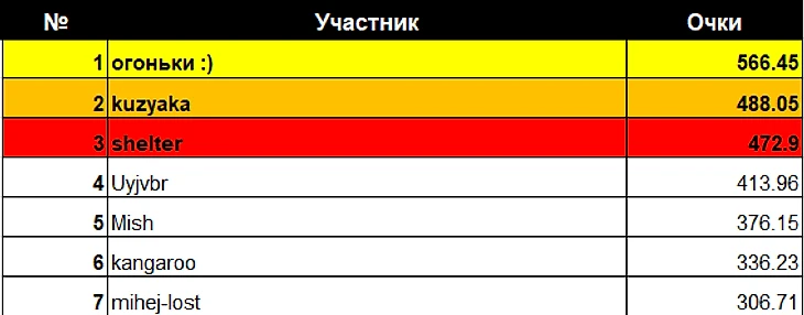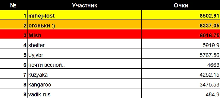 * Не забываем поздравлять чемпионов турнира в коментариях к посту ведь на их месте в любой момент можете оказаться и вы :)