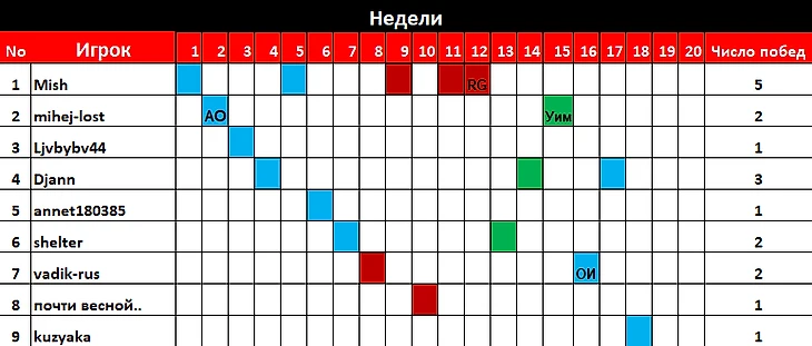 Победителем 18-й недели становится kuzyaka Поздравляем!