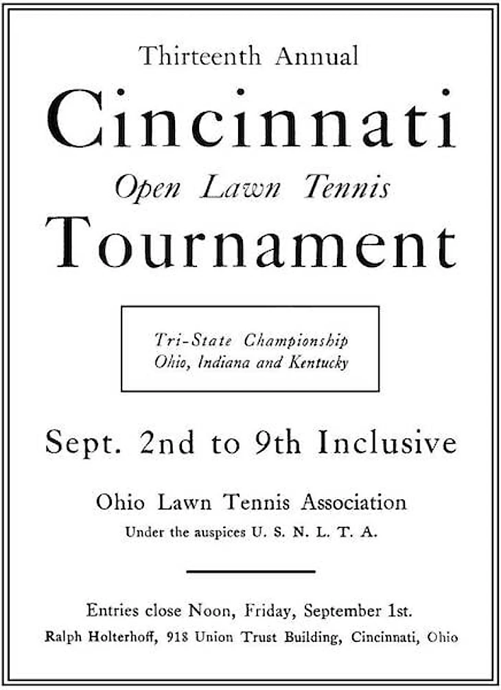 Между тем в Цинциннати, основанном в 1788-м, через 12 лет после провозглашения независимости США, в теннис начали играть еще в XIX веке. Первый турнир прошел там в 1899-м, а в 1910-м журнал American Lawn Tennis писал о нем: «У соревнований в Цинциннати вполне оправданная репутация самого хорошо организованного турнира, а гостеприимство по отношению к приезжим игрокам сделало его по-настоящему популярным».