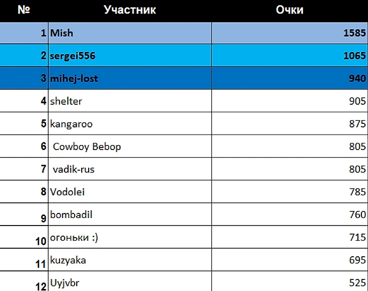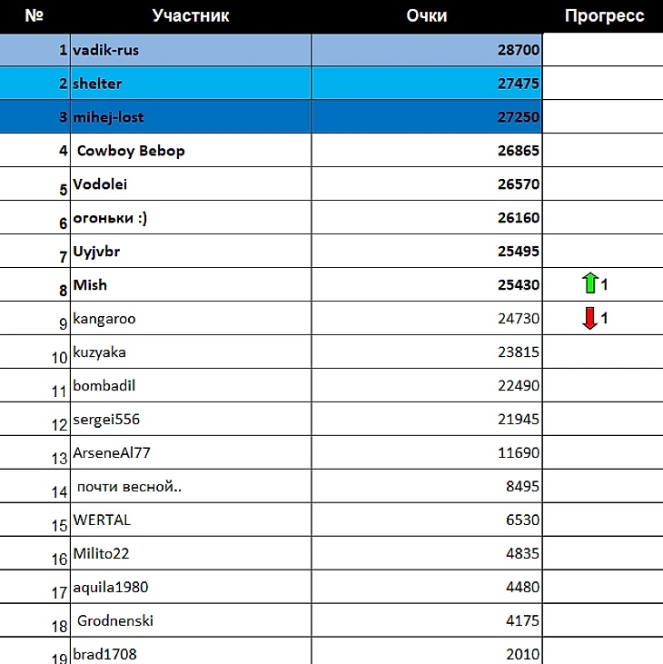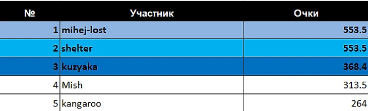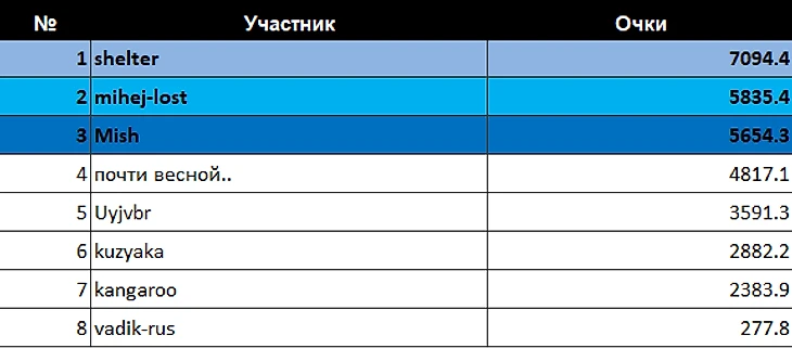 * Не забываем поздравлять чемпионов турнира в коментариях к посту ведь на их месте в любой момент можете оказаться и вы :)
