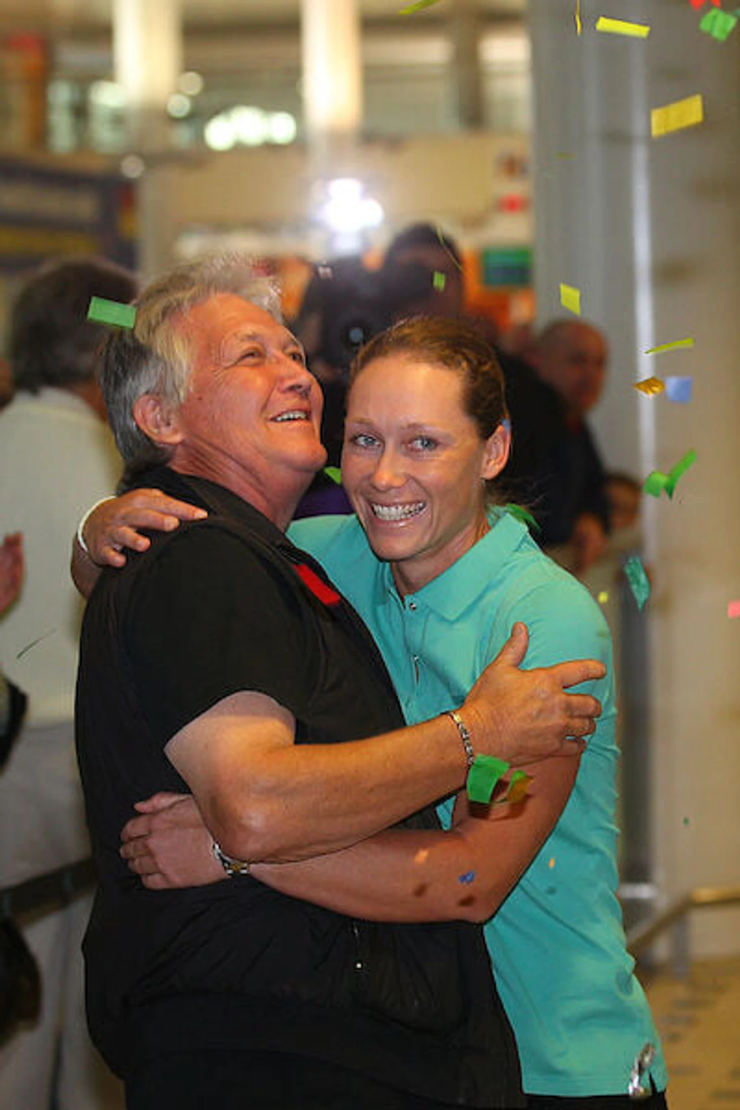 Папа Стосур Тони встречает дочь в аэропорту Брисбена после победы на US Open