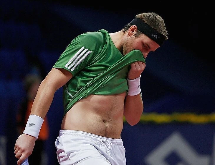 Фиш - талантливый, но не гениальный теннисист. Видимо, из-за неуемного желания догнать гениев, прыгнуть выше головы и полетела психика - вечное напряжение, перетренированность, строгие диеты, беспощадность к себе.