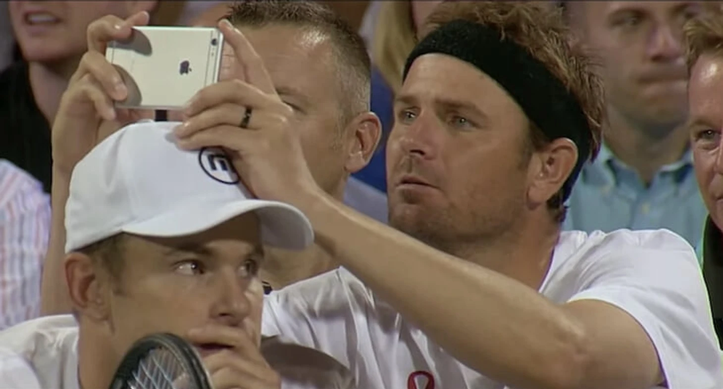 Фиш снимает трибуны на одном из последних турниров карьеры в 2015-м, где сыграл в паре с Роддиком, ради этого вышедшим с пенсии