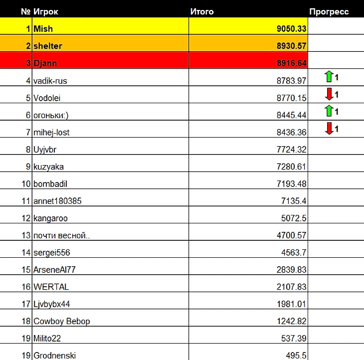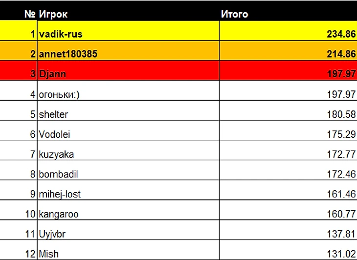 * Не забываем поздравлять чемпионов турнира в коментариях к посту ведь на их месте в любой момент можете оказаться и вы :)