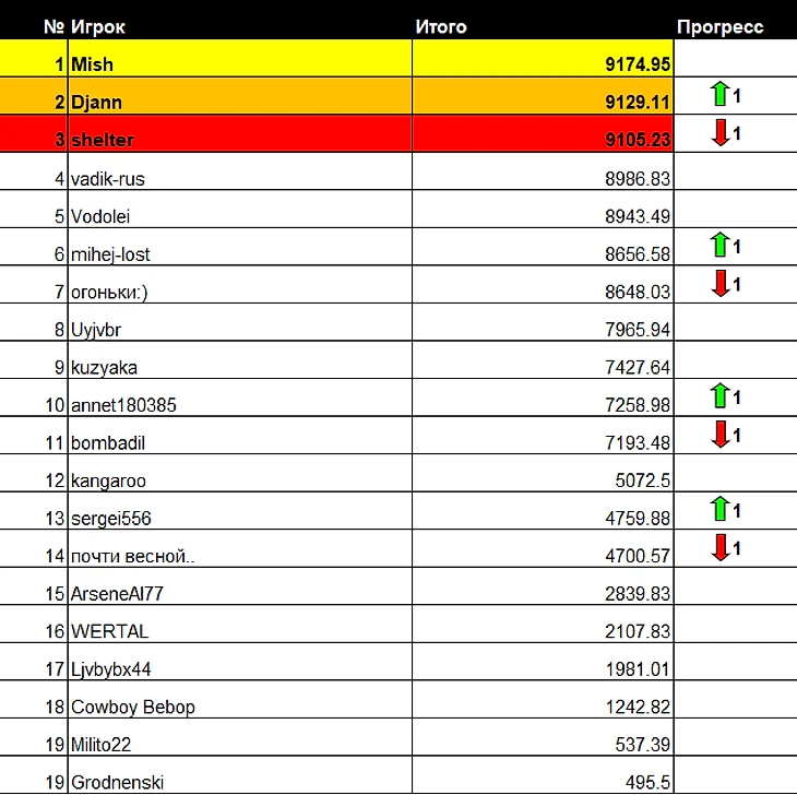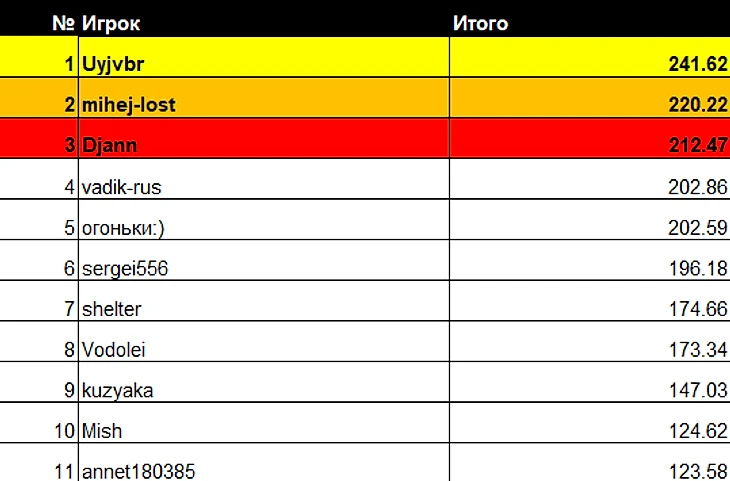 * Не забываем поздравлять чемпионов турнира в коментариях к посту ведь на их месте в любой момент можете оказаться и вы :)