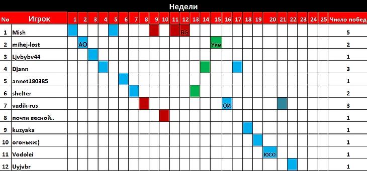 Победителем 22-й недели становится Uyjvbr Поздравляем!