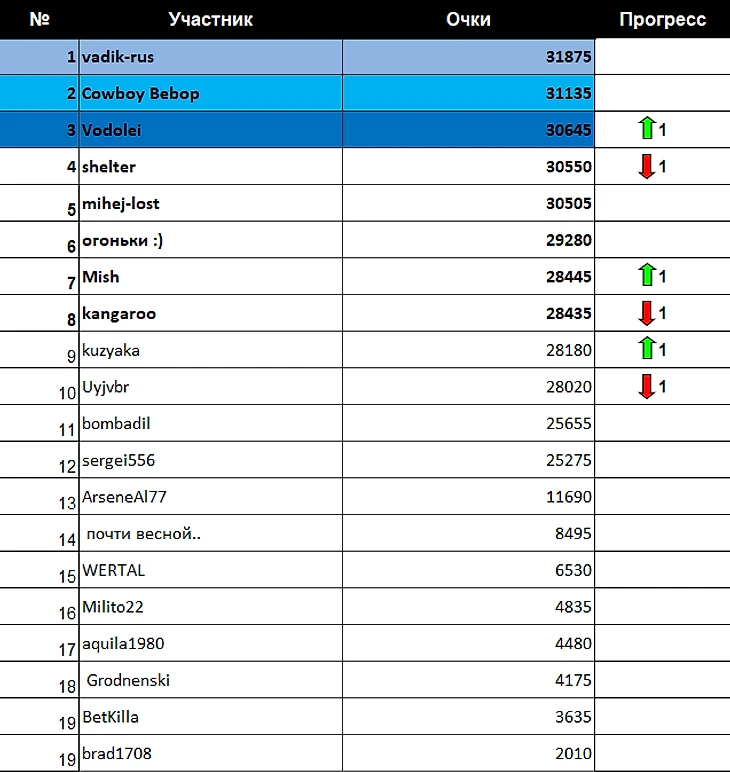 * Не забываем поздравлять чемпионов турнира в коментариях к посту ведь на их месте в любой момент можете оказаться и вы :)