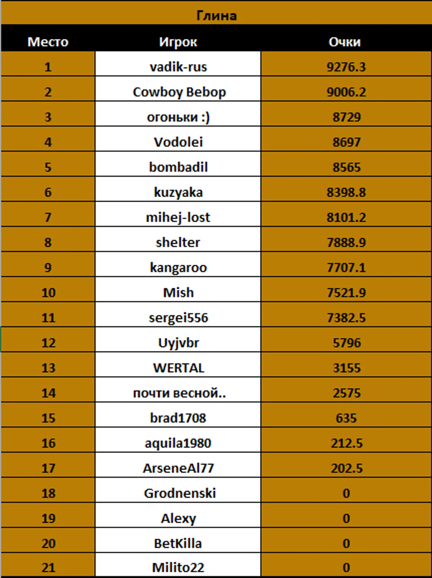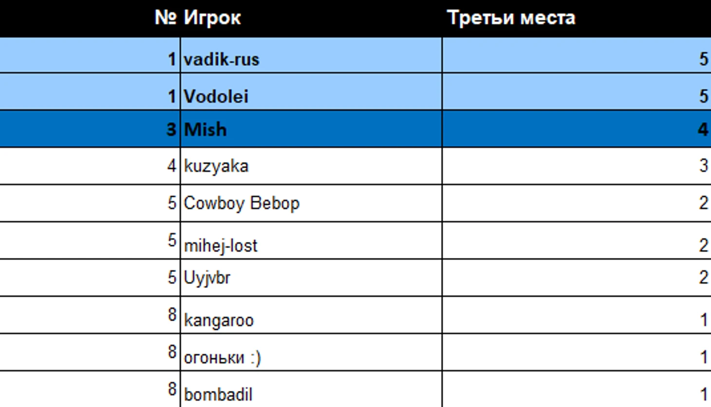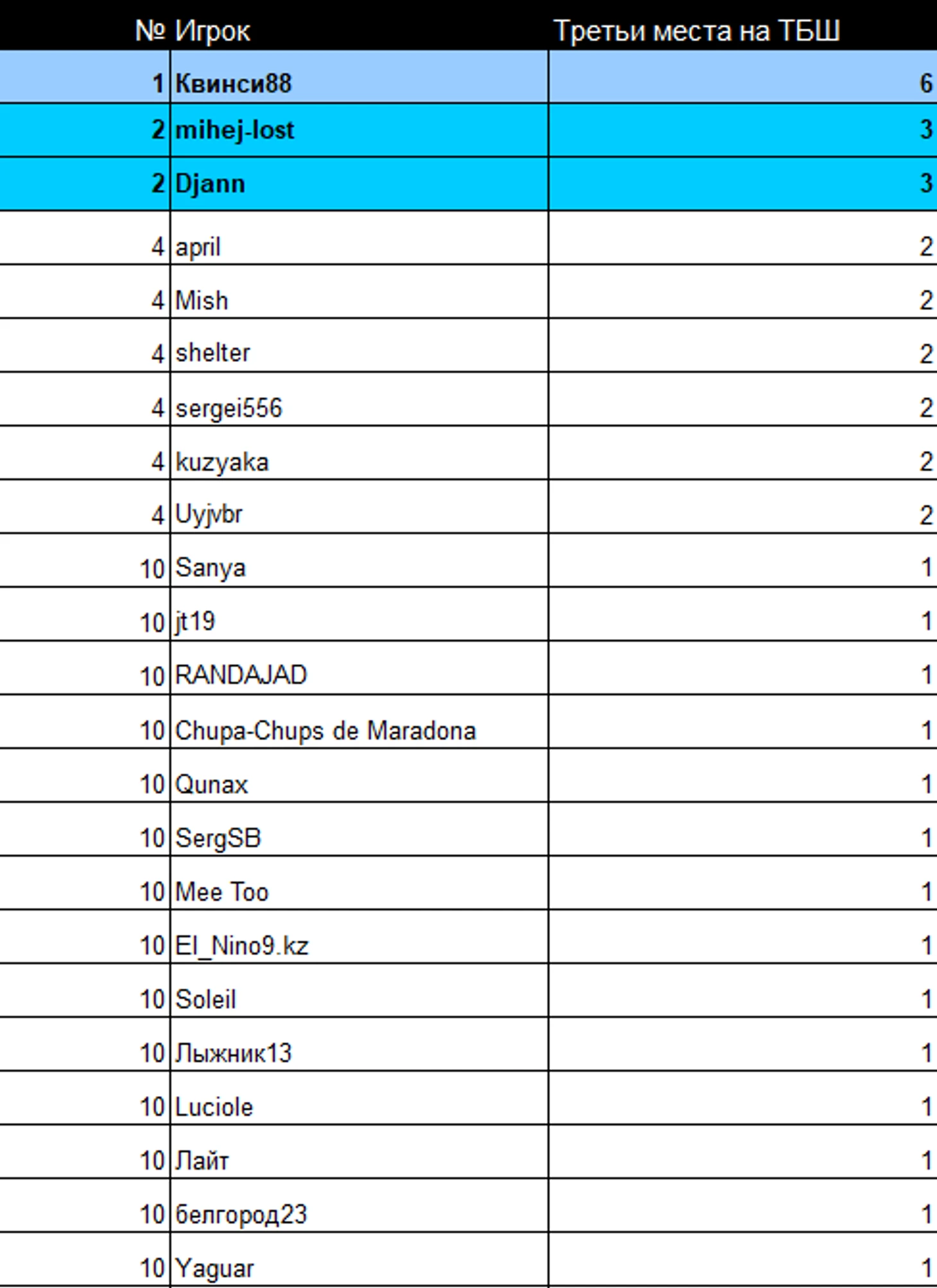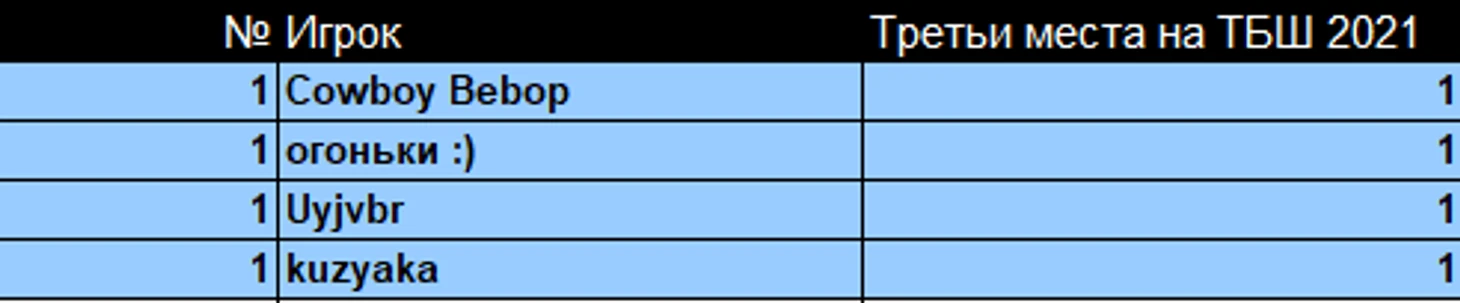 Теперь посмотрим на общую таблицу третьих мест на ТБШ.