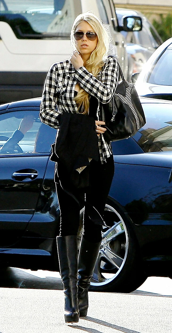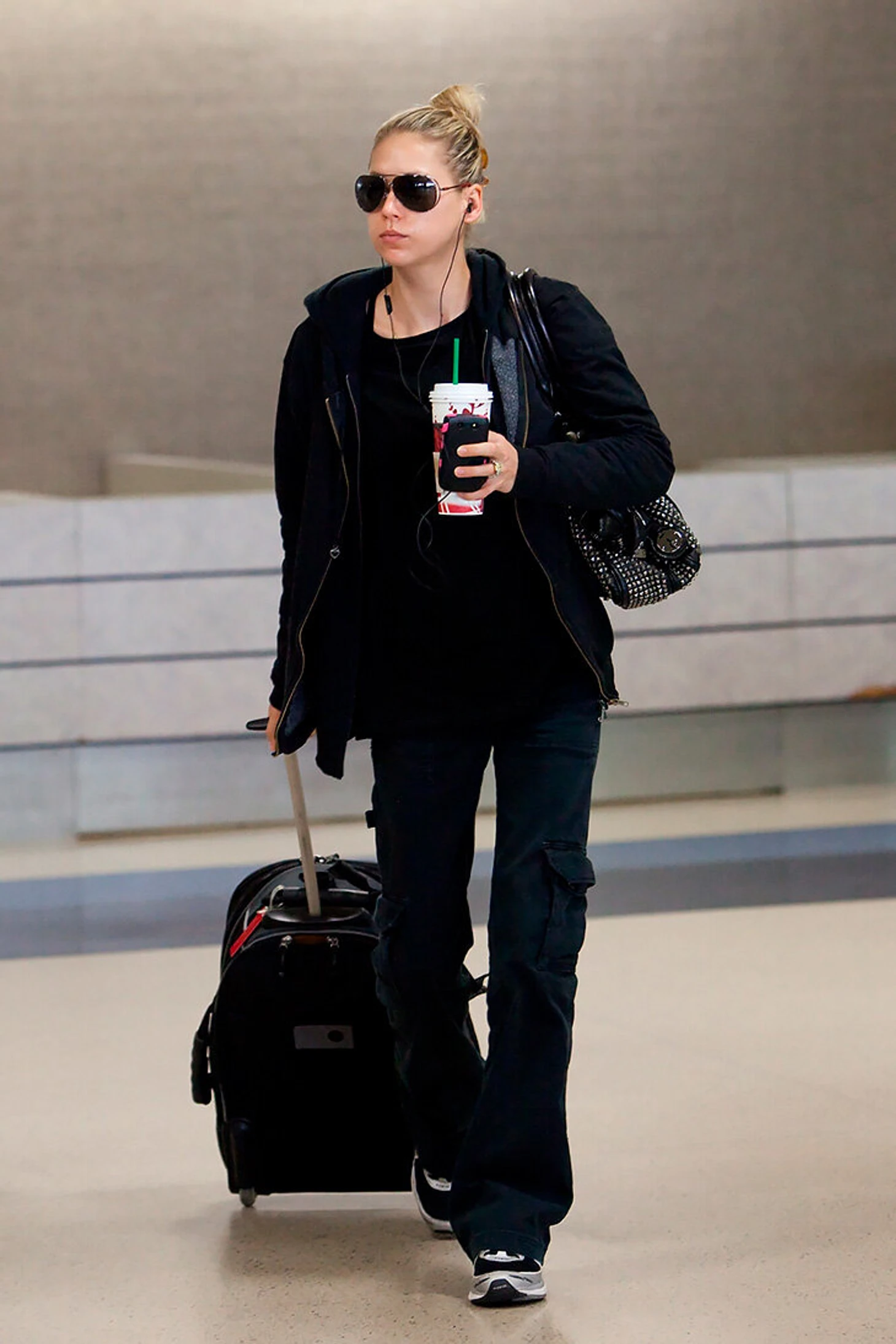 Более современную интерпретацию бохо-шик получил, например, в коллекциях бренда Chloé, который в тот период возглавляла Стелла Маккартни (а ассистировала ей Фиби Файло, позднее ставшая главным дизайнером 2010-х). Наряд как раз в стиле Chloé – джинсы и струящийся топ с вышивкой – на Курниковой на вечеринке в Лос-Анджелесе летом-2003.