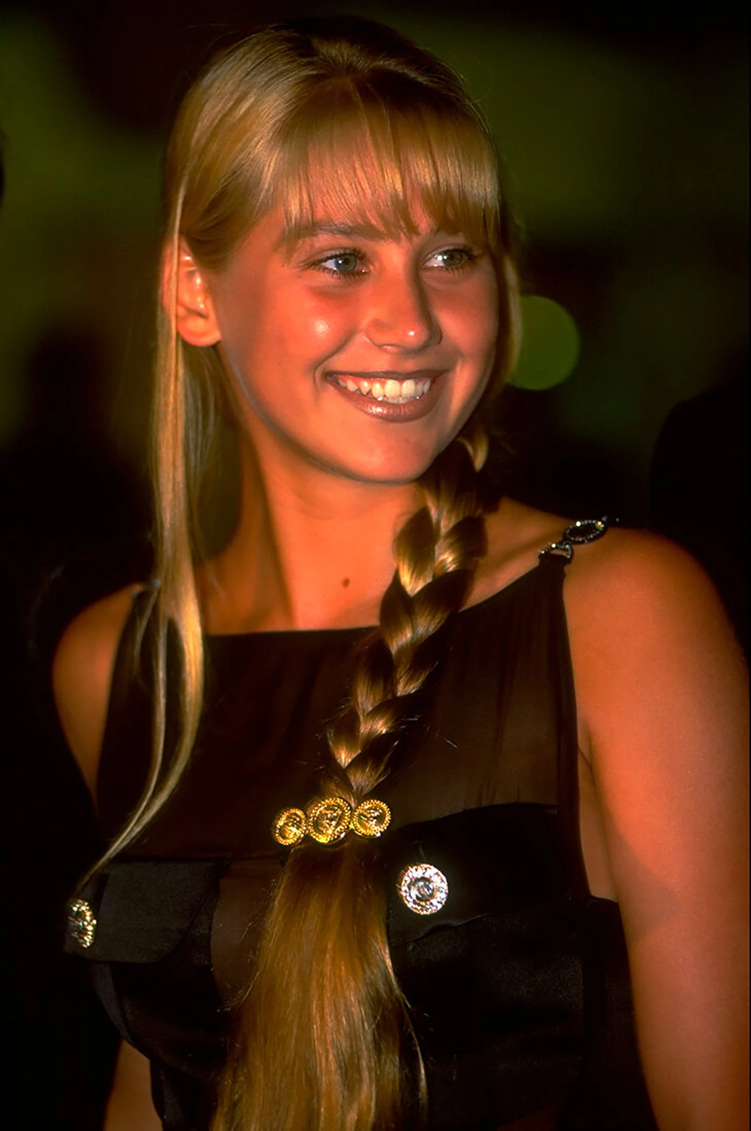 Тут на 19-летней Анне платье из коллекции Джона Гальяно для Christian Dior весна-лето-2000, в котором сошлись примерно все приметы начала нулевых: вырез халтер, облегающий крой, принт с эффектом тромплей (имитирует фактуру денима).