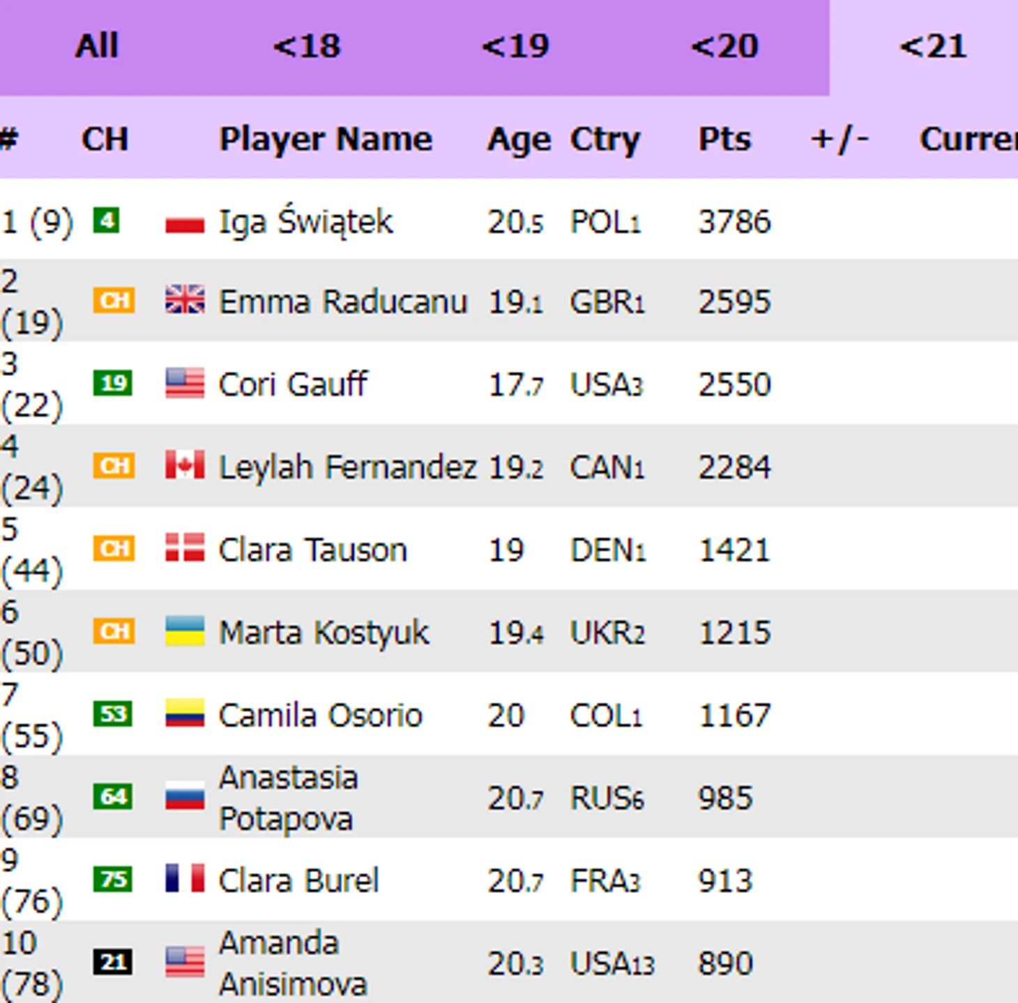 Qinwen Zheng(№126) - 19 лет, карьер-хай, причем стремительный - год провела потрясающе, правда на не столь высоком уровне. От этой жду, наконец прорыва... а то Сиюнь Синьюнь, не оправдали наших больших китайских надежд... ключевое слово больших)
