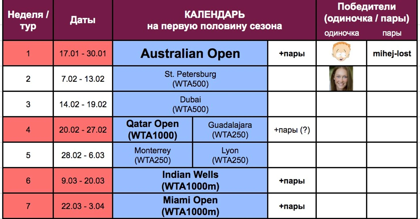 Чемпионские гонки после 2-й недели WTA