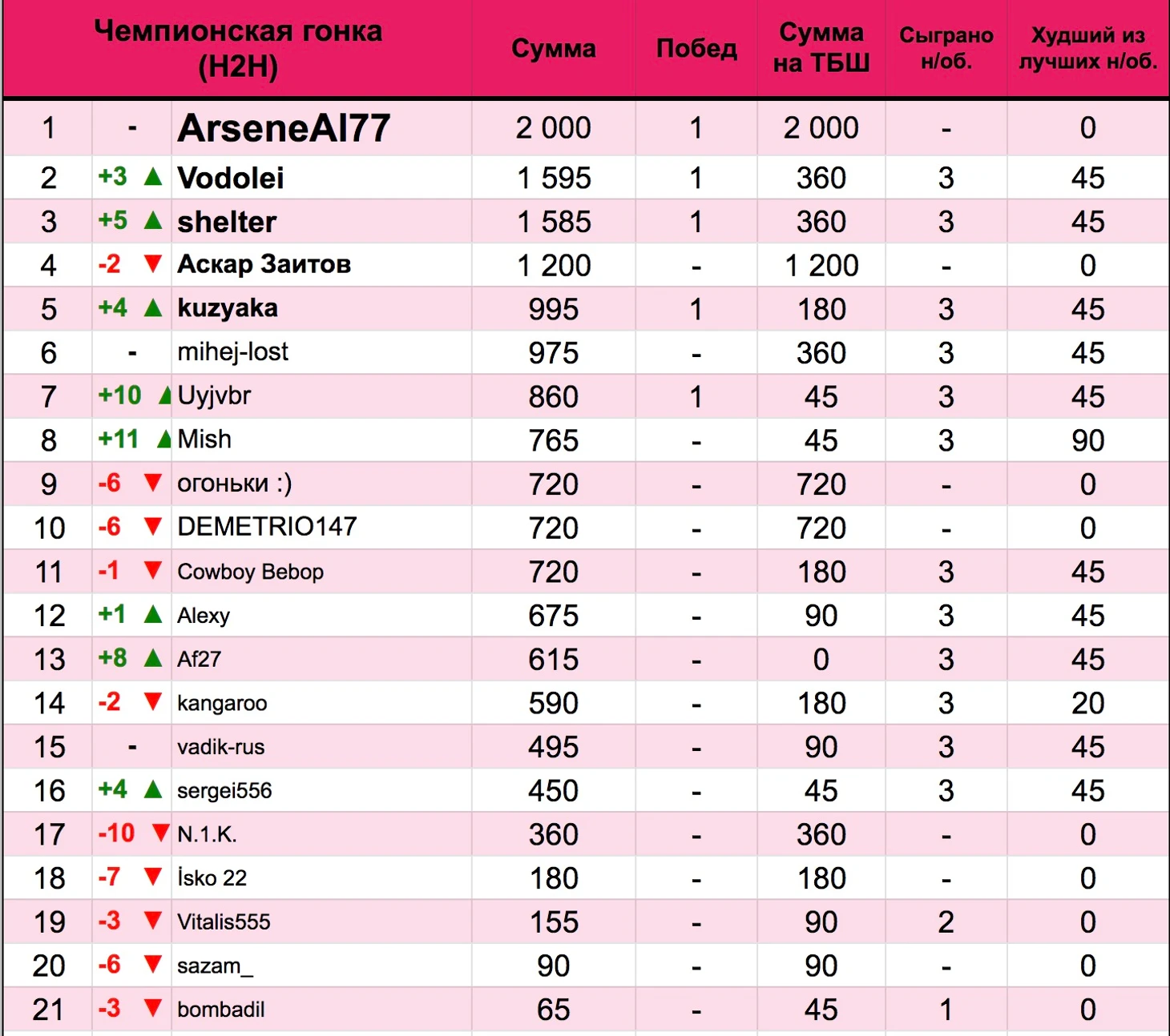 Долгожданную победу, причем в обоих турнирах, одержал Водолей, в тройку вошли Вадик-рус и Миш.