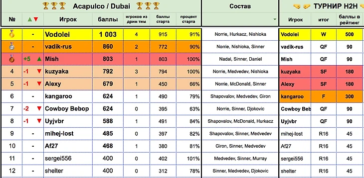 В H2H смены лидера пока не случилось, но наверняка произойдет по итогам турнира в Майями.