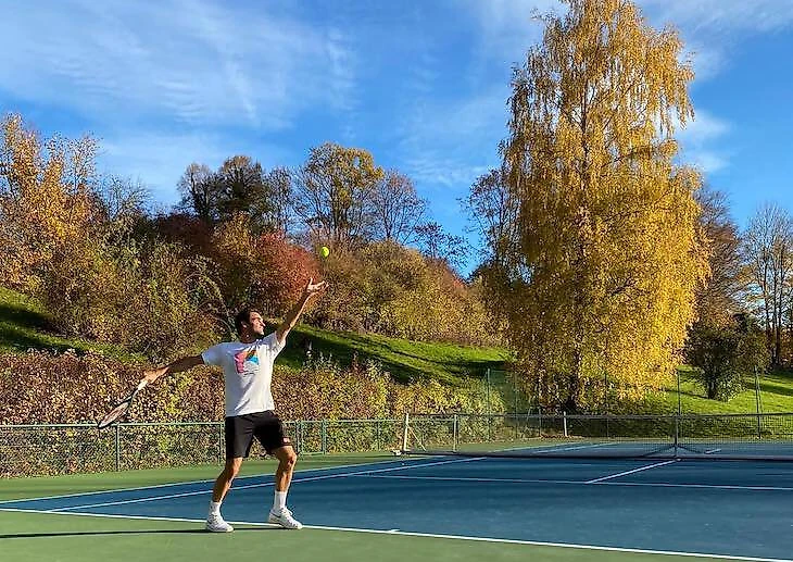 На карантине Роджер разнообразил тренировки занятиями на свежем воздухе – бил по стенке мячом в снегопад, выполняя удары любой сложности.