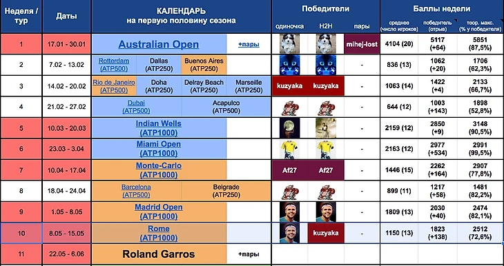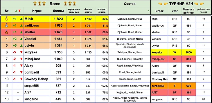 Кузяка, лидировавшая до последнего тура, но из-за отсутствия Джоковича, это лидерство упустившая, отыгралась в H2H