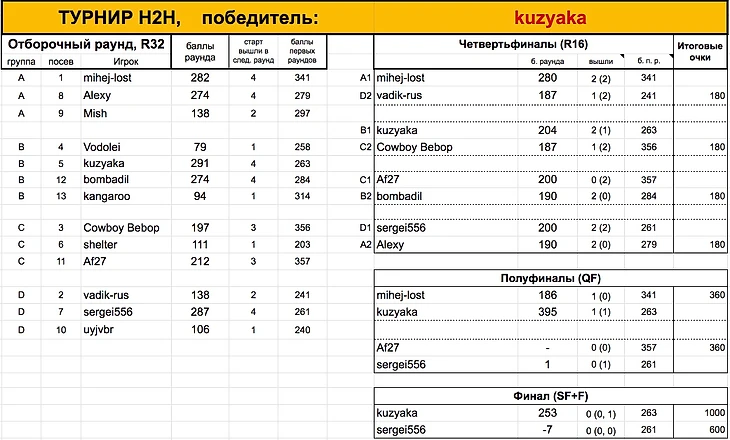 Наконец-то у нас разные победители основного зачета и H2H в мужском разряде :)