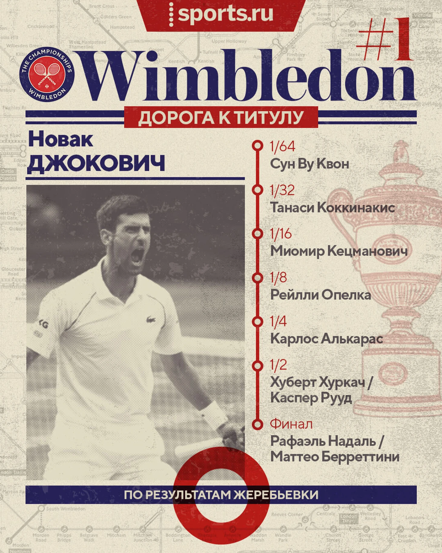 Надаль возьмет третий «Шлем» подряд? Или Джокович – седьмой «Уимблдон»? И кто-нибудь остановит уже Швентек? Изучаем сетки без россиян