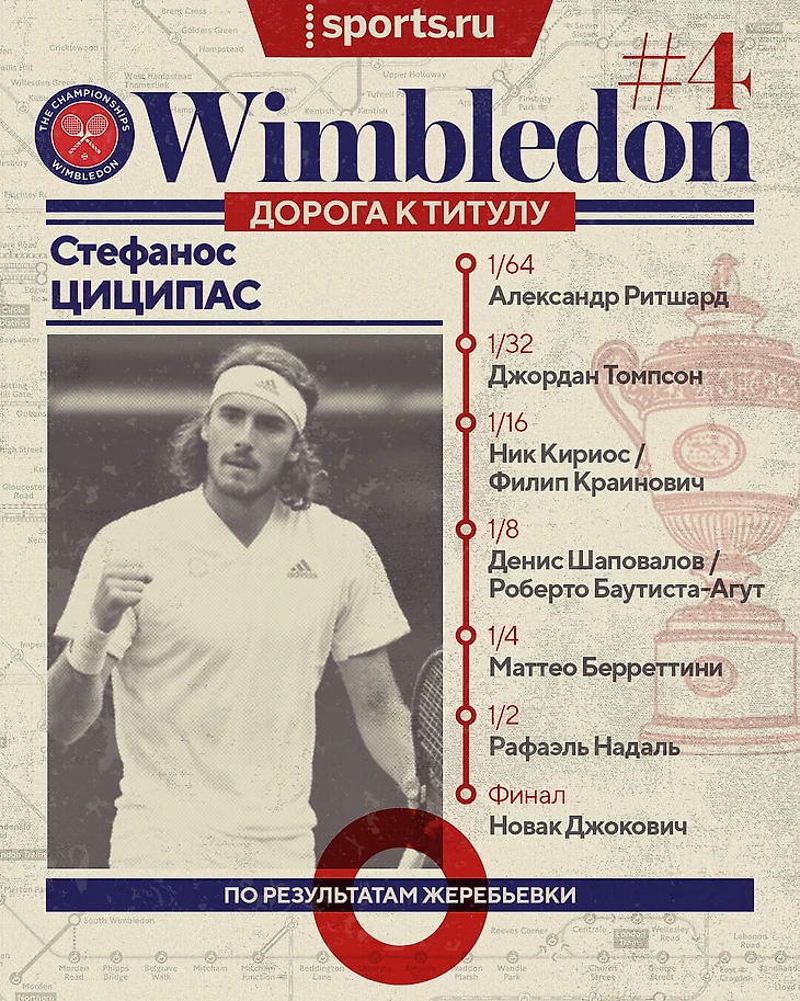 Изначально мы не планировали изучать сетку и Стефаноса Циципаса, но он это исправил, взяв титул на Мальорке. Однако на «Уимблдоне» ему будет тяжело, потому что уже в третьем круге он идет на Ника Кириоса.