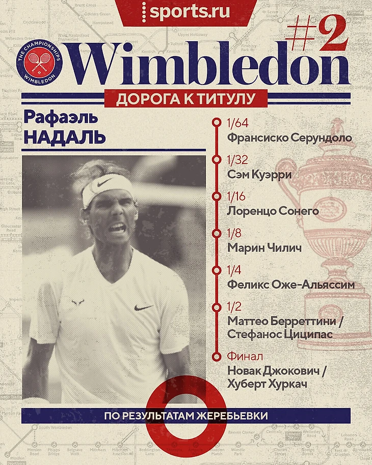 2) Как всегда, самый ад у Рафы! Просто ремейк июньского РГ! Чтобы выиграть опять надо будет проходить МИНИМУМ 5 сеяных(для сравнения, Джокеру только 3)! 🤬 Проблемы начнутся уже в 3 круге, ибо Сонего на траве совсем НЕ подарок! Выиграть будет нереально, для меня он фаворит #3 тут. Буду доволен выходом в полуфинал, как его преданный болельщик, это наиболее вероятный исход, ИМХО.