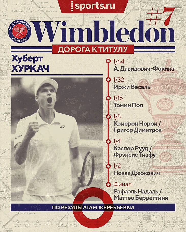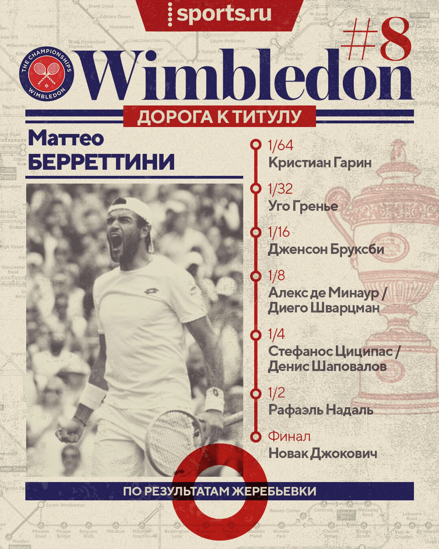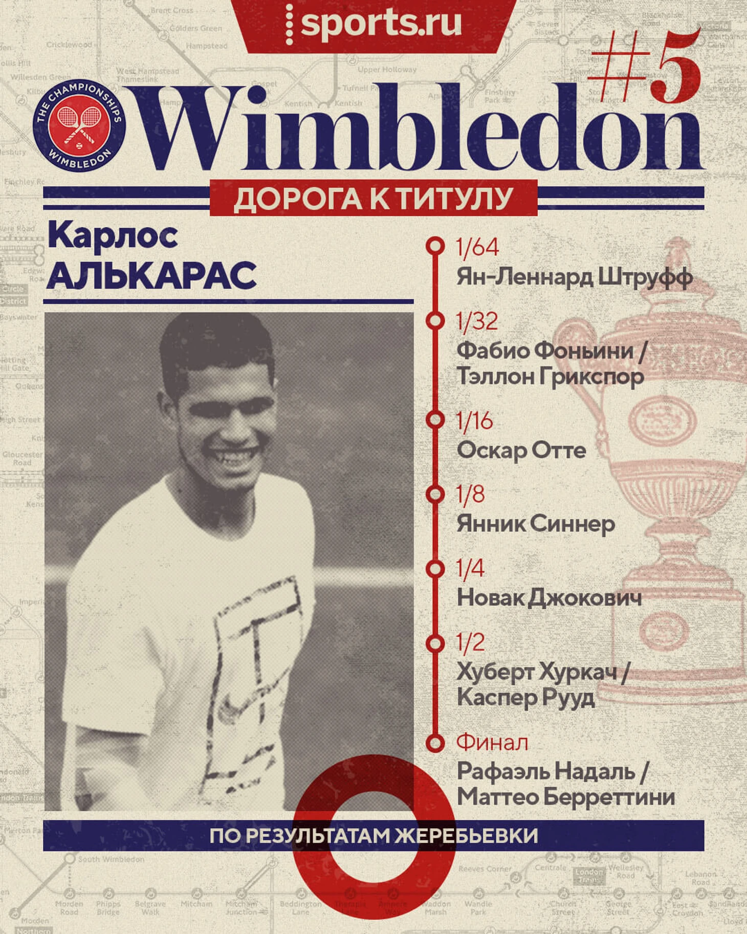 Но сетка на «Уимблдоне» двукратному чемпиону досталась непростая. Уже во втором круге, скорее всего, будет встреча с Сэмом Куэрри, который за счет невероятной мощи всегда опасен на траве. И дальше будет только сложнее.