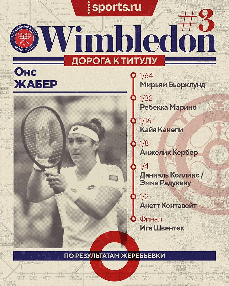 Еще большим фаворитом может считаться Онс Жабер, в этом году взявшая на траве титул в Берлине. Она еще специально взяла передышку перед «Уимблдоном», чтобы не повторять ошибок, приведших к вылету в первом круге «Ролан Гаррос».