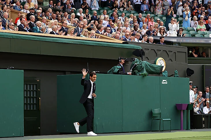 По идее закрывать парад чемпионов должна была Навратилова – никто не побеждал на «Уимблдоне» больше ее девяти раз. Но она стала очередной жертвой уимблдонского ковида. Поэтому последним на корт вышел восьмикратный чемпион Федерер, что было драматургически идеально.