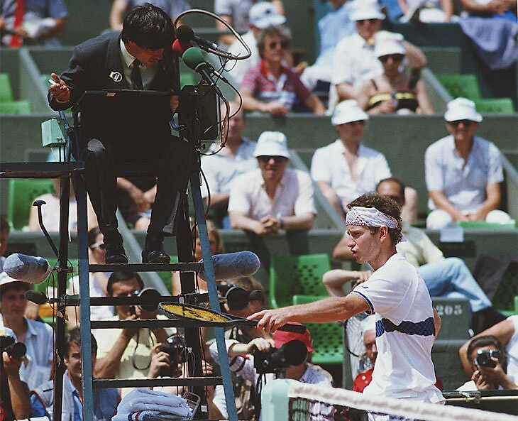 В 1985-м появились первые профессиональные судьи на вышке. Ричард Кауфман и Джереми Шейлз за зарплату 25 тысяч долларов судили 42 турнира в год. Их назначали на матчи сложных игроков, например, на одном турнире в Стокгольме Кауфман отсудил все матчи Макинроя.