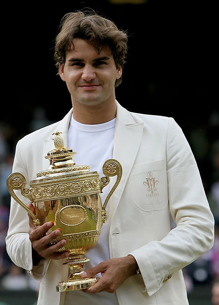 На форме Федерера лого впервые появился на «Уимблдоне»-2006. Роджер выходил на корт в блейзере с детализированным гербом на нагрудном кармане. Знак чем-то напоминал уимблдонский кубок и не был похож на тот, что печатали на косметике. В центр поставили букву F, а внизу добавили расшифровку.