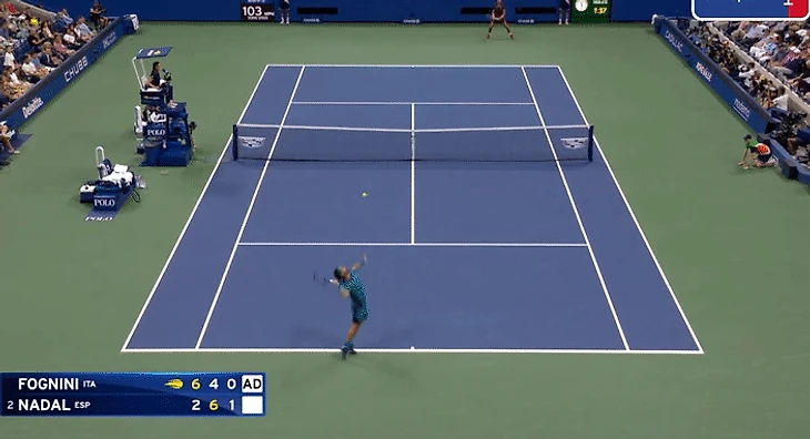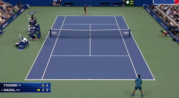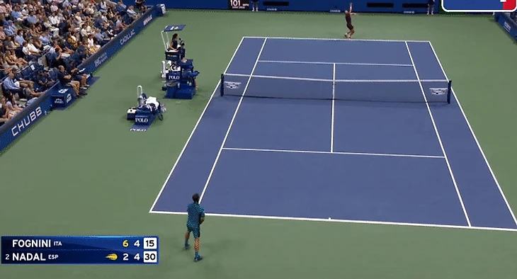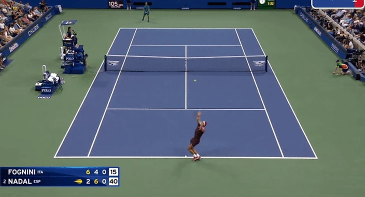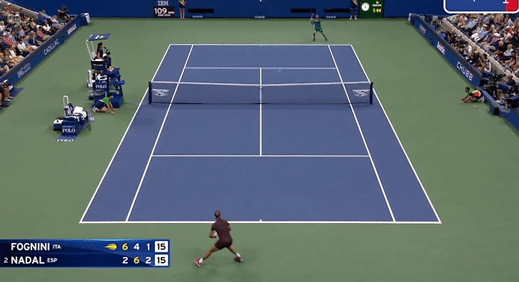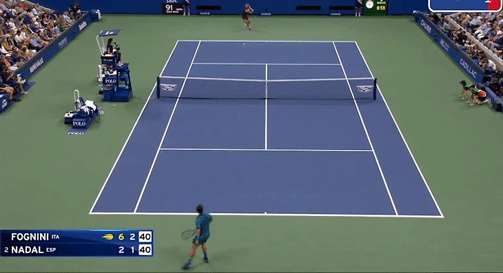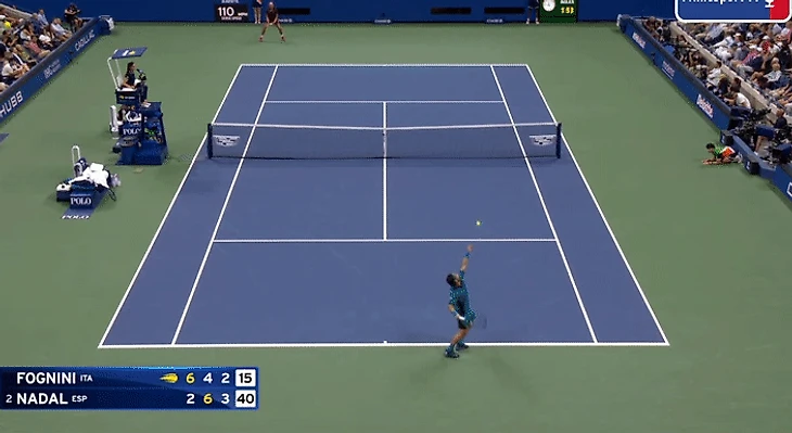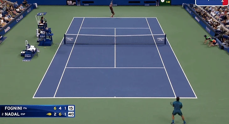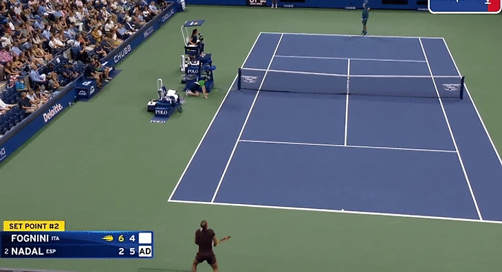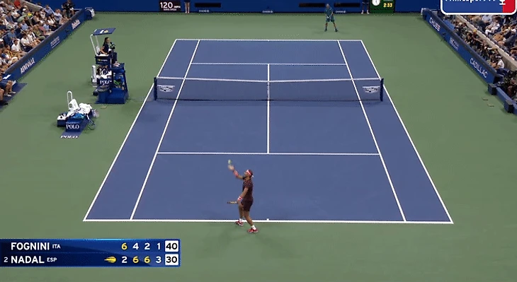 Буквально на наших глазах вернув себе атакующую мощь, Рафа стал приближать неизбежный для итальянца брейк. Разумеется, сделал он это способом, надёжнее (и эффектнее) которого в теннисе ещё не придумали - виннером с форхенда:
