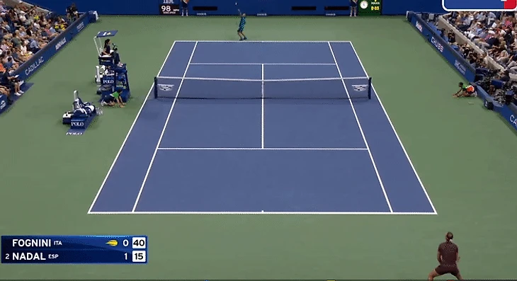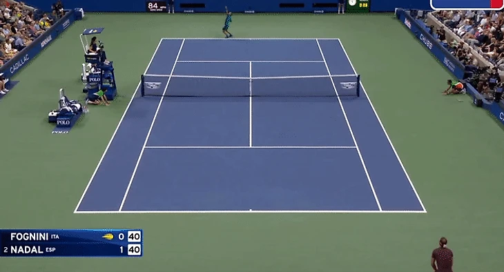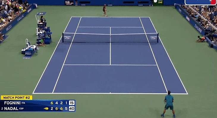 Головокружение от успеха накрыло Рафу в следующем гейме так сильно, что он не выиграл ни очка на своей подаче, кроме первого розыгрыша всё отдав анфорсами. Фабио подарка не оценил и быстро соорудил 15-40 на своей. Ну а дальше - THIS IS PHENOMENADAL: