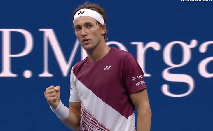 А на брейк-пойнте Каспер феноменально отработал: вытащил мощный форхенд, догнал хороший дроп, кинул отменную свечу и выжал ошибку.