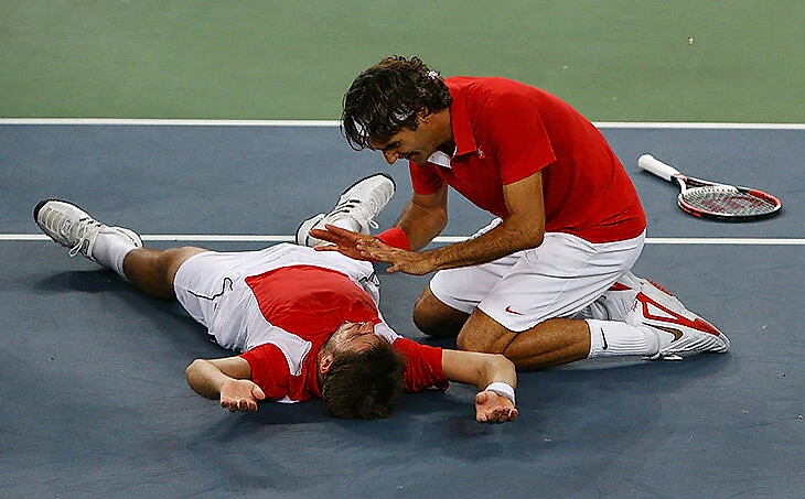 Но в следующем году Роджер снова был хорош: вернулся в финал «Уимблдона» и топ-3, вышел в финал на 11 турнирах и взял пять титулов. Однако главной победой стала не индивидуальная, а командная – они с Вавринкой наконец собрались и принесли Швейцарии Кубок Дэвиса. Первый и единственный в ее истории.