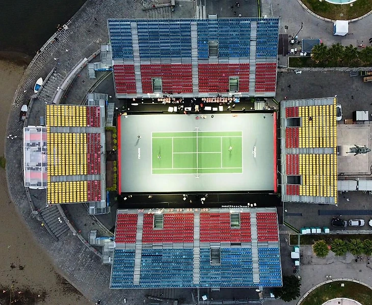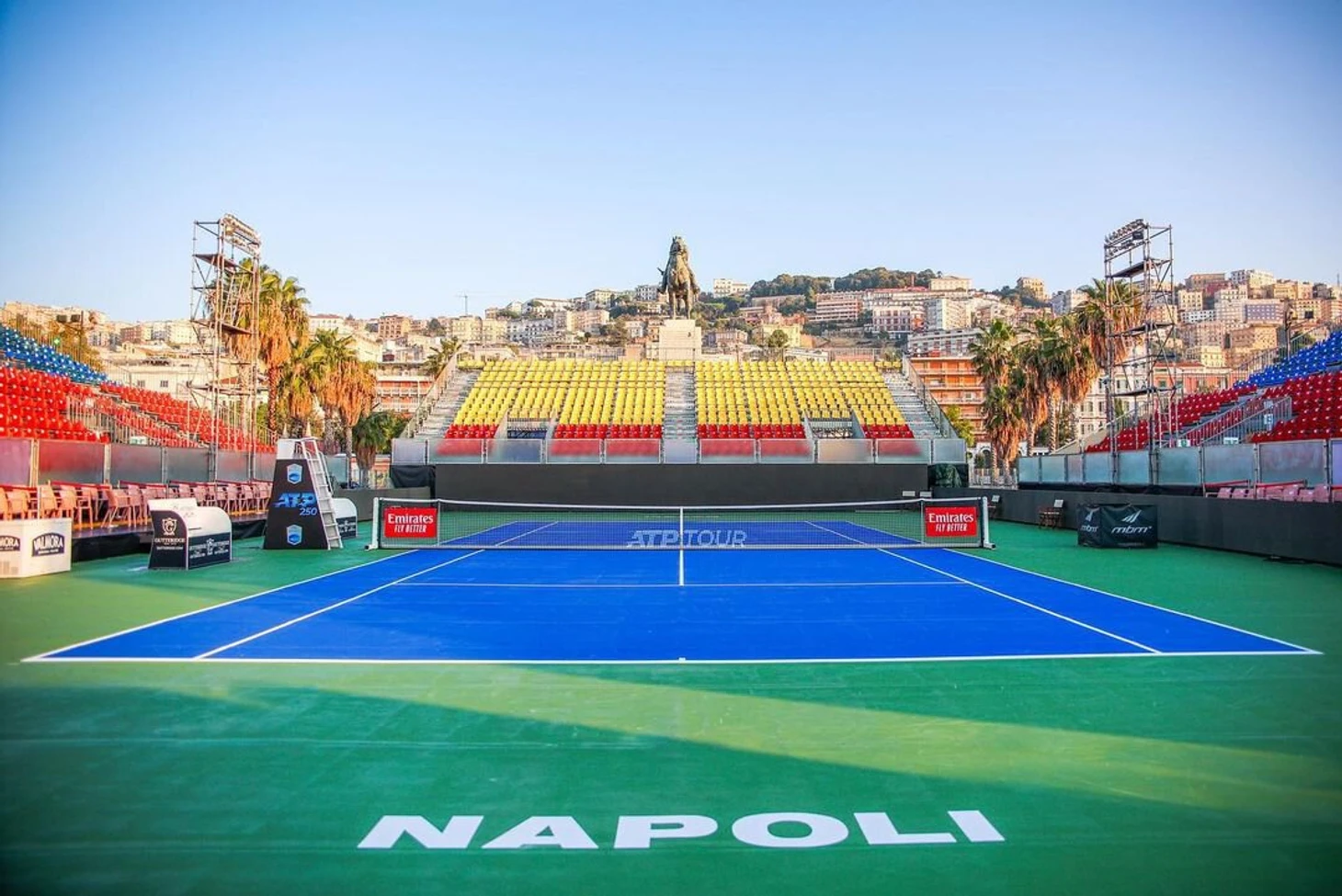 Нынешний Tennis Napoli Cup принимает местный теннисный клуб – Tennis Club Napoli прямо на набережной залива, существующий с 1905-го. Его корты грунтовые, поэтому к этой неделе на трех из них постелили хард. Но в субботу, когда должна была стартовать квалификация, оказалось, что на этом харде невозможно не только играть, а даже ходить: