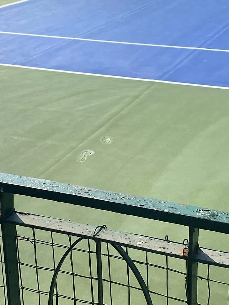 Следы от шагов на новом хардовом корте в Неаполе в выходные. Хард – это бетон