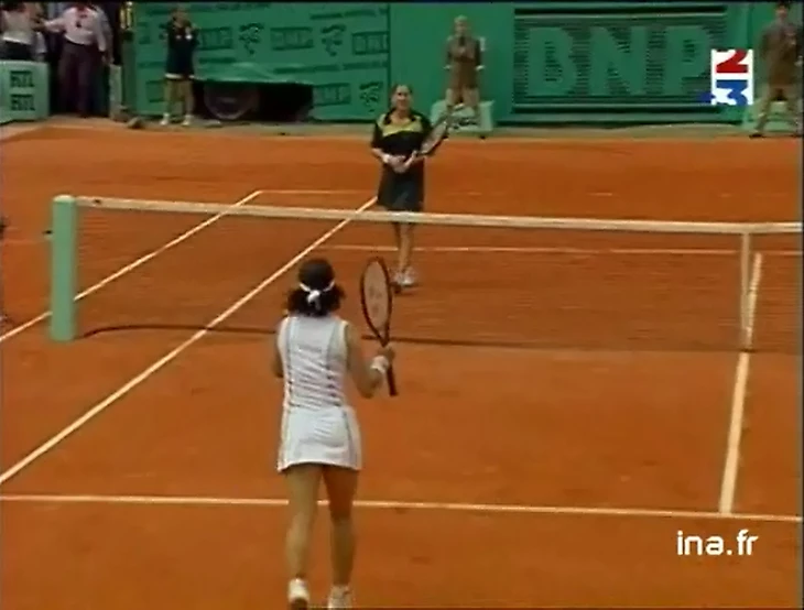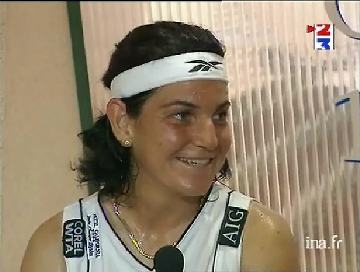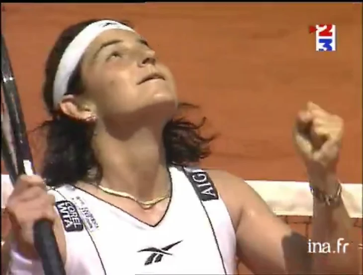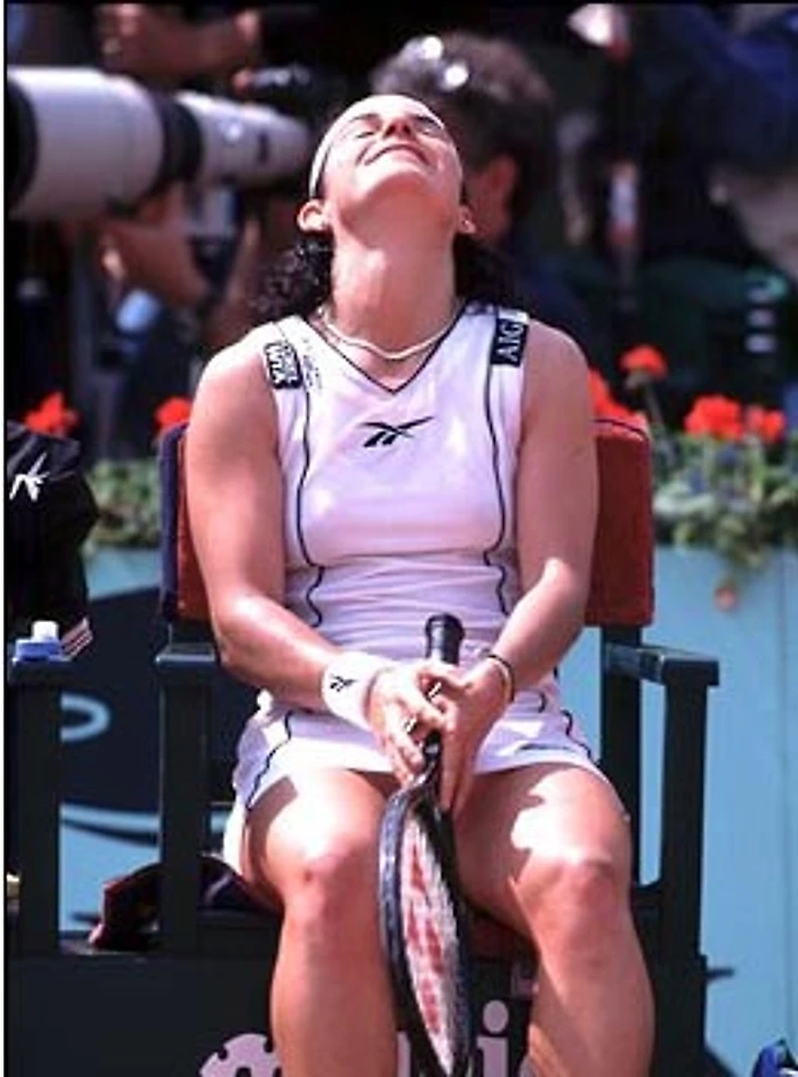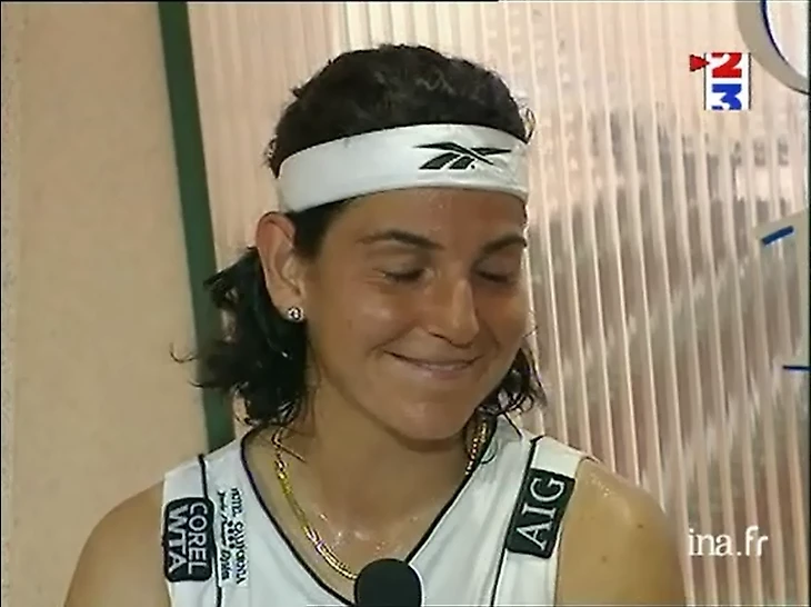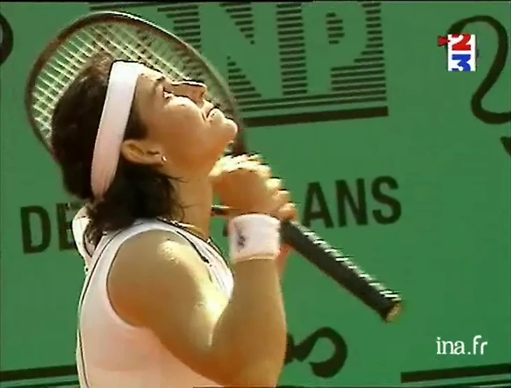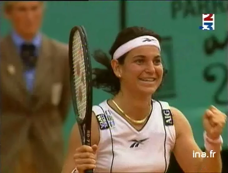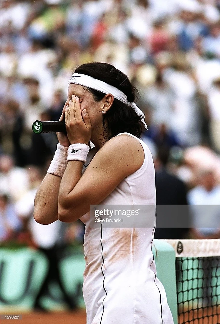 Пожалуй не было теннисистки, которая бы так эмоционально переживала поражения и выплакала столько слёз на корте, как Аранта. Но и радоваться она более чем умела. Самая эмоциональная теннисистка, которая этим и славилась. Пять проигранных подряд финалов большого шлема(4 Штеффи Граф, 2 из них легендарные, где Аранте не хватило миллиметров для победы) и олимпиады, травмы, падения и депрессия не сломили великую испанку и после 3 лет тяжелейших испытаний, она вновь взяла крупнейший титул, победив в финале Монику Селеш(до этого были обыграны Серена Уильямс и Линдсэй Дэвенпорт). Аранта проиграла 2-й сет 0-6, но в 3-м показала теннис уровнем даже выше, чем в год, когда она была первой ракеткой мира. 82% подала первым мячом, за 8 геймов сделала 13 виннерсов при всего 5 невынужденных ошибках. Смотреть на неё в моменты радости было очень приятно. Мимика и кадры потрясающие. Первобытно-искреннее счастье.