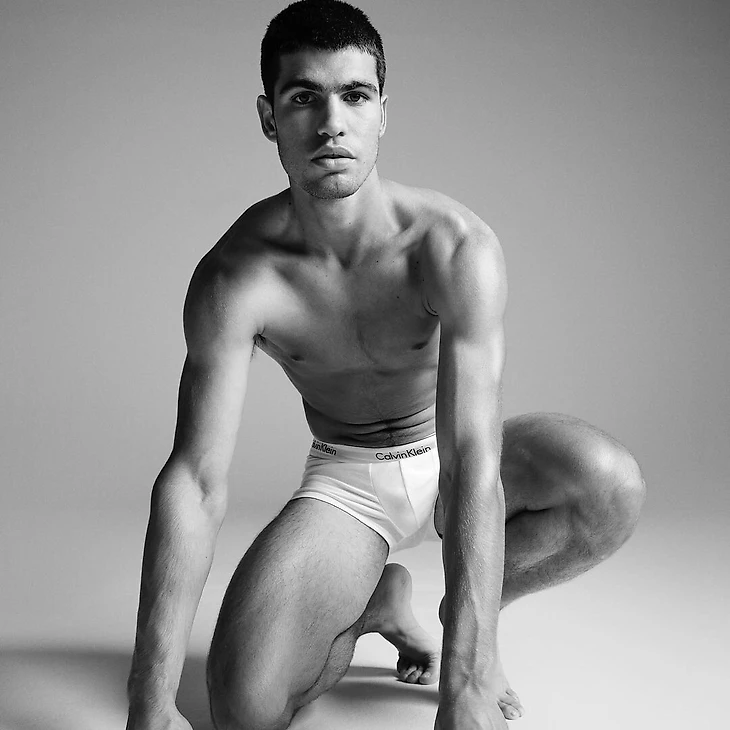 Алькарас снялся в рекламе трусов Calvin Klein. Раньше бренд любил провокации и секс и запустил карьеру Кейт Мосс