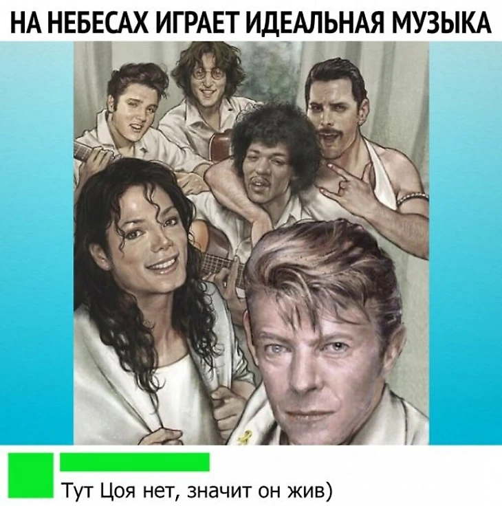 Это популярная фраза фанатов группы «Кино». Считается, что она появилась и закрепилась вскоре после смерти Виктора Цоя в 1990 году. Якобы кто-то написал на стене на Арбате «Сегодня погиб Виктор Цой», но потом там большими черными буквами добавили – «Цой жив».