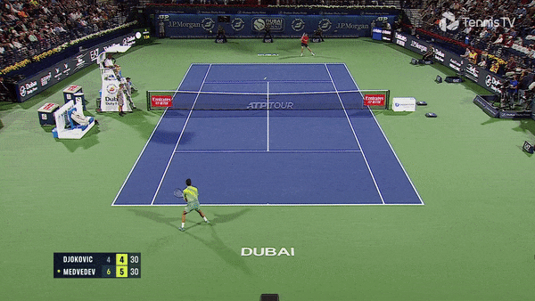 Медведев в лучшей форме – один из немногих, кто способен доминировать в борьбе с Джоковичем на задней линии. В пятницу он это делал за счет скорости движения, и стабильности ударов, помноженной на их мощь и глубину.