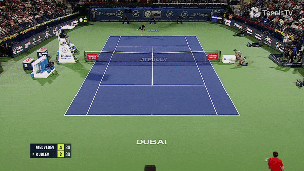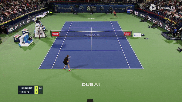На турнире в Дубае всего шестой раз в истории титул ATP разыграли игроки из России. Даниил Медведев, перед этим выигравший 13 матчей подряд, встречался с Андреем Рублевым.